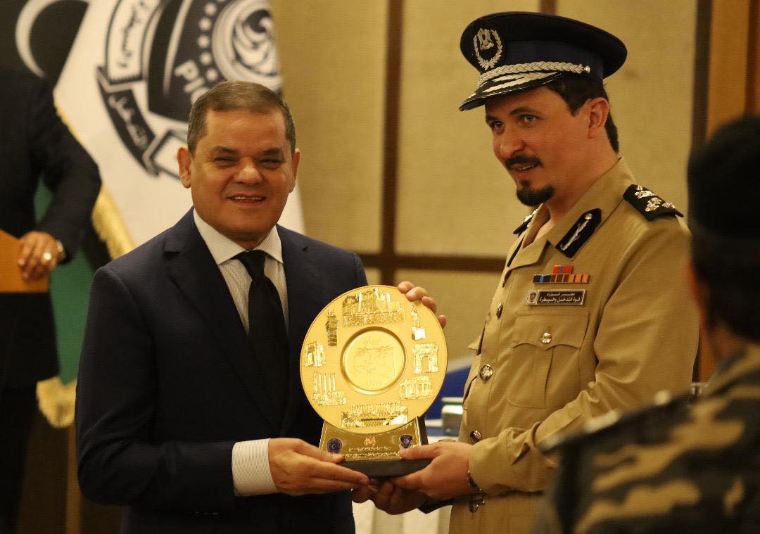 عبد الحميد دبيبة و الذي تقدم من خلالها بكلمه أثنى فيها على المجهودات المبذولة في سبيل رسم سياسة التعاون الامني والمؤسسي ومد جسور التواصل لتحقيق التكامل كما أشار السيد الرئيس بزيادة توسيع دائرة الأعمال التنموية و العمل على ركب عجلة التطور الرقمي بالتدريب اللازم .