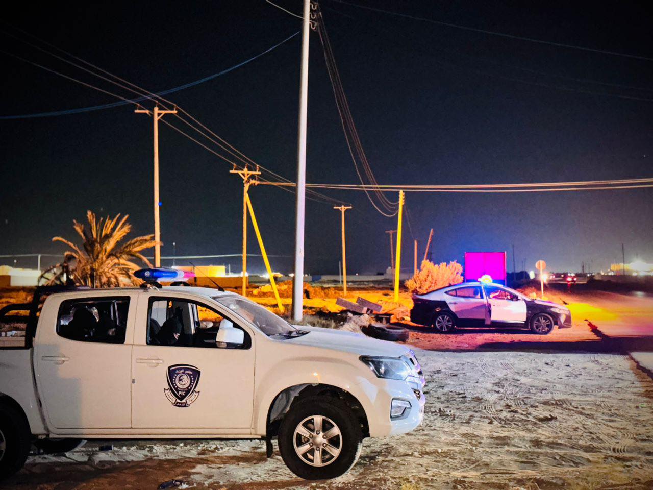 جانب من أعمال اعضاء قوة التدخل والسيطرة مكتب زوارة في تنفيذ الخطة الأمنية بالتعاون مع مديرية أمن زوارة والتى شملت تامين المنطقة الممتدة من مدينة زوارة مروراً بزلطن وأبو كماش إلى منفذ رأس اجدير .