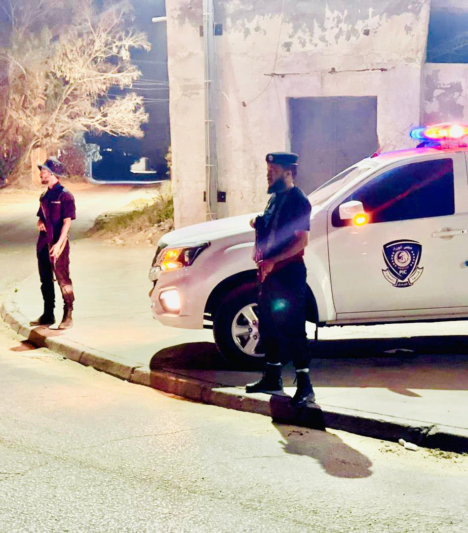 جانب من تمركز البوابات الامنية لاعضاء قوة التدخل والسيطرة مكتب الزاوية .