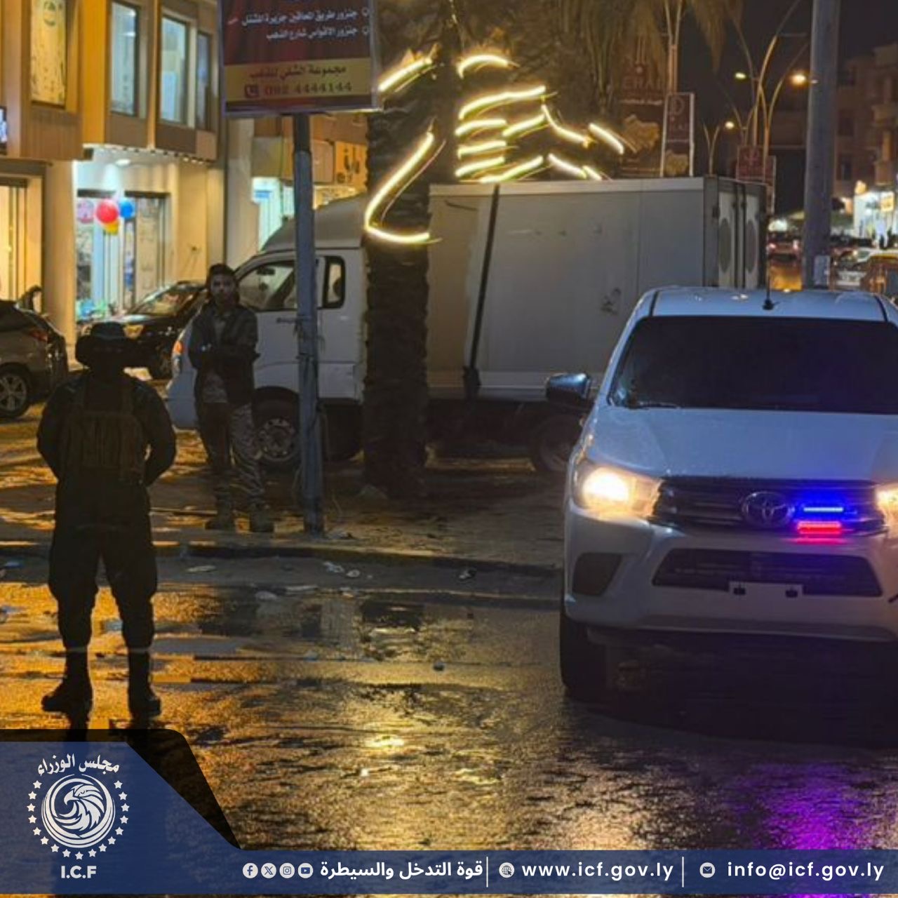 في ظل الأجواء الممطرة التي تشهدها مدينة جنزور، ومع حلول الليالي الأخيرة من شهر رمضان المبارك وما يصاحبها من حركة ملحوظة للمواطنين، تواصل قوة التدخل والسيطرة تسيير دورياتها الثابتة والمتحركة بعدد من الشوارع والمناطق الحيوية داخل المدينة.